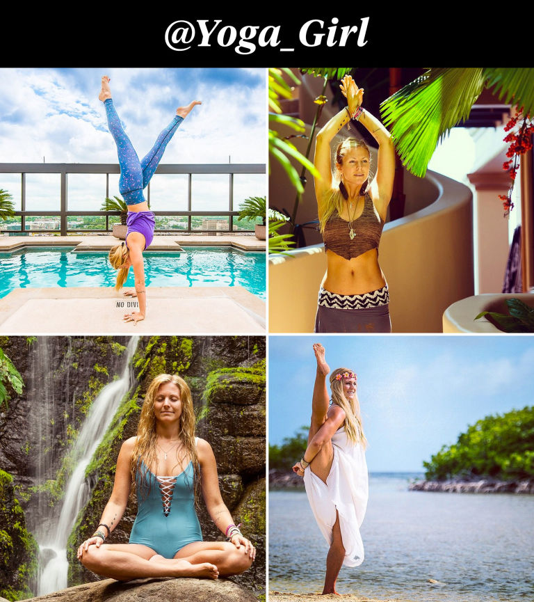 This yoga guru hasn't racked up 1.4 million followers for nothing: She posts beautiful yoga selfies and smiles with upbeat, borderline prophetic captions that just make you feel good.